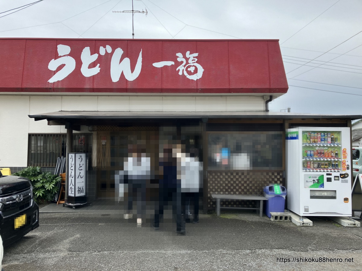 さて、礼拝・納経を終えたあと、車のお遍路さんはお食事処へと向かいます。今日の昼食は香川ということで、讃岐うどんに決定です。人気店と噂の「うどん一福」さんへと到着です。