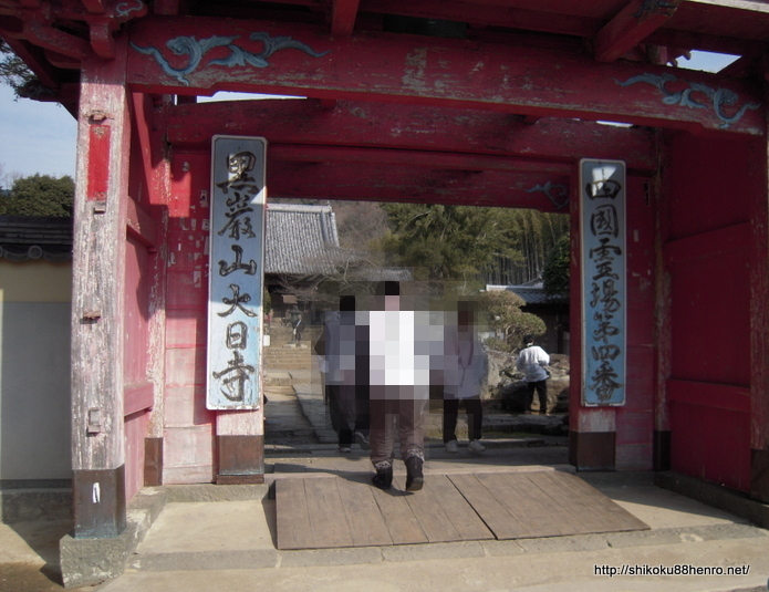 駐車場のすぐ脇にある仁王門の真っ赤で立派なこと。なかなか目立ちます。駐車場スペースが少なくなっていましたので、だんだんお遍路さんが増えてきたようです。冬の四国八十八ヶ所はお遍路さんが少ないと聞いていたのですが、そうでもないみたいですね。